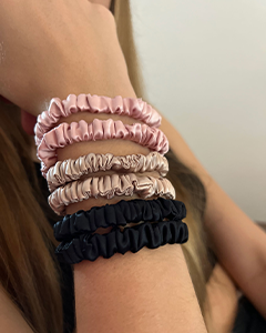 Pure 22mm silk scrunchies designed to protect hair from damage, hair creases. Pure silk is a pure protein fiber made of 18 amino acids. Our elastic is specially designed to keep from losing its shape.